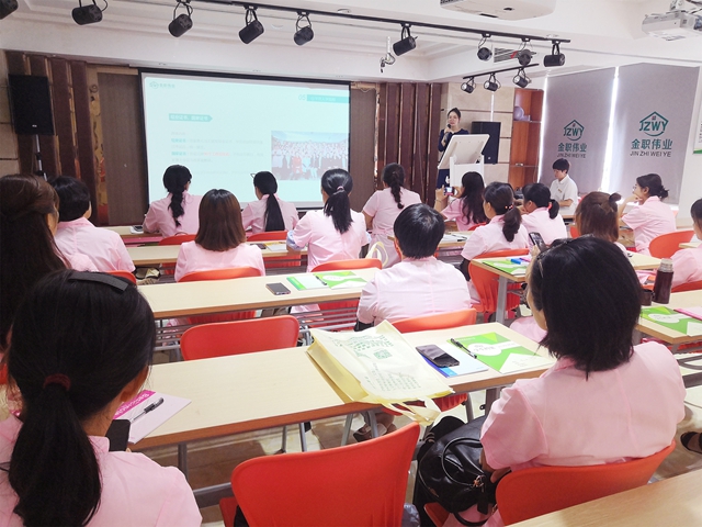 培训学校校长苏琼首先给大家介绍了金职伟业公司的基本情况和优势,以及母婴行业的发展前景,为学员的学习和今后的就业所做好的准备。听了苏校长的发言,大家仿佛吃了颗定心丸,对将来的发展更加信心满满。