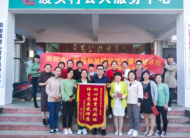 2019年10月31日,浏阳市柏加镇初级育婴师培训班圆满结业。此次培训是由金职伟业培训学校与浏阳市柏加镇渡头村村委会共同组织,在浏阳市人力资源与社会保障局和浏阳市柏加镇政府支持下开展的公益活动。并由长沙市金职伟业职业培训学校的专业讲师奔赴浏阳市进行授课,旨在帮助更多的贫困群众掌握专业技能,逐步实现精准脱贫,加快聚集社会力量和各方资源广泛开展一系列扶贫工作的进程。