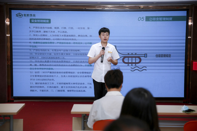 首先,班主任刘青青老师为学员们详细讲解了学校的规章制度,希望学员们能够遵守纪律,认真学习,营造良好的学习氛围。