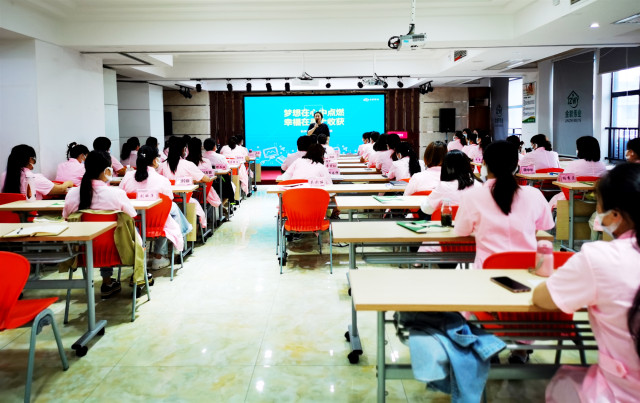 作为金职伟业职业培训学校的老学员黄兰兰也积极上台分享自己的感言:“她说自己从生产线的一名操作工到文员,七年的职业工作,让她一无所获。在心仪的职业岗位面前,没有好学历作为敲门砖让她感到深深的无力和自卑。来金职伟业培训,不仅仅是觉得母婴行业市场前景好,而是在这里她树立了正确的职业观、人生观和价值观。在老师的帮助下她克服了自卑心理,她要靠自己勤劳的双手打造出人生的新天地”。