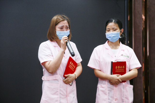结业典礼现场,谈及学习收获与感受。让老师们印象特别深刻的学员亢红英红着眼分享道:“我是一个十分慢热的人,刚来金职伟业职业培训学校时,我非常的忐忑不安,因为我不知道自己是否能够真正的学好这一门技术。可是通过这段时间的学习,我觉得自己收获满满,每一堂课程对我来说都是一笔巨大的财富。感谢金职伟业的老师用他们专业的知识为我们“传道、授业、解惑”。也感谢金职伟业给予我这样一个难得的机会,让我认识了这么多的姐妹,我非常开心。也祝姐妹们在今后的母婴道路上一路飘升”。