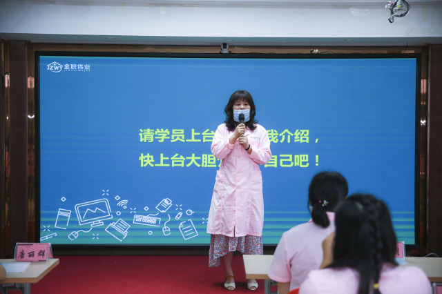 学员们听完老师们的发言后,纷纷上台分享自己选择母婴行业的初衷。来自益阳的学员张玲分享道:“我选择从事母婴职业这条路是婆婆建议的,五年的全职妈妈生活,让我已经跟社会严重脱节。当婆婆第一次跟我建议时,我心里是十分排斥的。我觉得月嫂在别人眼里跟保姆没什么区别,我好不容易不要带自己的孩子了,转身又去带别人的孩子,没必要啊。所以毅然选择了别的行业,但是当走上朝七晚十工作岗位的时候,我觉得身心俱疲。疫情之下各行各业不景气,让我觉得十分迷茫。直到上个月给嫂子打电话得知她来金职伟业学习育婴员知识的时候,我陷入了沉思。经过深思熟虑,我选择了来金职伟业参加育婴员培训,通过育婴员的课程培训我更加坚定了以后从事母婴行业的信心。所以在国家大力帮助女性提升就业能力的好政策下,我又继续选择了母乳喂养指导班课程培训。而且今天我是带着我的妯娌一起来学习的。我相信我们妯娌齐心,未来不管是就业还是创业,通过自己勤劳的双手定能打造属于自己的一片天”。