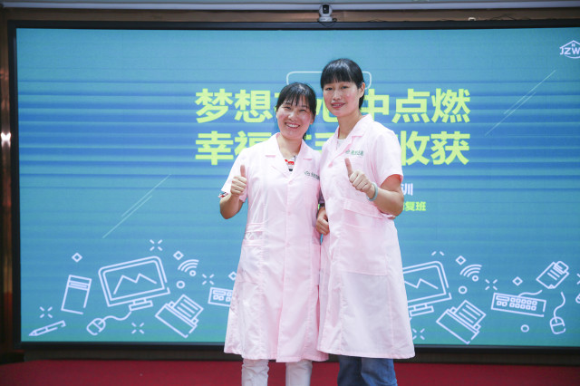 有着四个月身孕的90后孕妈罗秀云也走向台分享自己参加培训的目的:“我来金职伟业参加育婴员培训主要是为了肚子里即将出生的宝宝,现在的科学育儿跟传统育儿的观念已经完全不一样了。我希望在老师的指导下学习专业的育儿知识,避免宝宝出生的时候因为育儿观念不同和长辈发生分歧。我相信通过这次专业的技能培训,定会给我未来的育儿生活带来很大的帮助”。