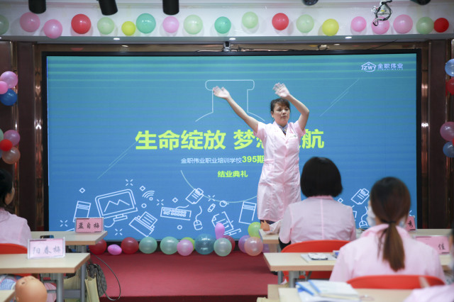 “唱出你的热情,伸出你双手,让我拥抱着你的梦......”在悠扬的歌声中,结业典礼也步入了尾声。最后,老师一一为学员们颁发结业证书,至此,金职伟业395期育婴班结业典礼圆满结束,学员们也将去往各个岗位,造福更多的家庭。