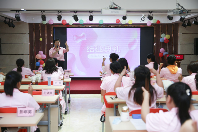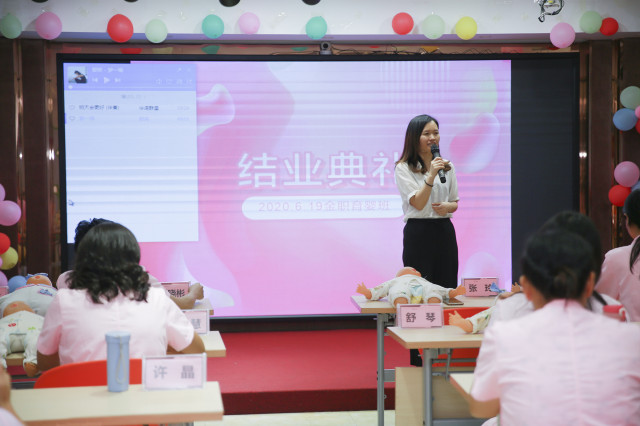 此次结业典礼由金职伟业职业培训学校教务就业主管闫文杰老师主持,高级母婴护理兼高级育婴师讲师徐玲、陈蕾琼参加结业典礼并讲话。