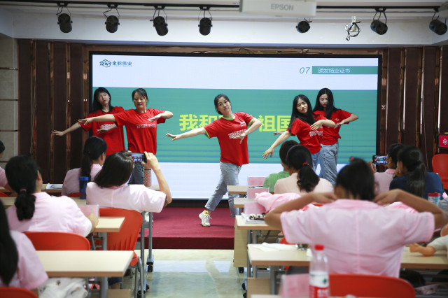 典礼伊始,学员们为大家带来了精彩的开场表演。自编自唱的原创歌曲、《我们的纪念》,歌声真切,句句都饱含对金职伟业的情谊及对老师、学员的不舍。舞蹈《宝贝,宝贝》、《我和我的祖国》,舞姿动感活泼,深情投入的她们将在每个人心中留下她们最美的样子。