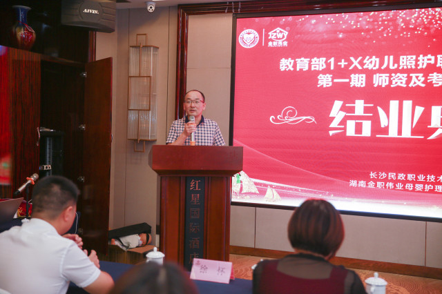会上,长沙民政职业技术学院继续教育学院院长徐怀发表讲话。他表示,回首本次培训,大咖云集、内容丰富、气氛热烈,相信参与此次培训的各位专家老师都收获满满,也相信此次培训对幼儿照护领域的发展起到了一定程度的推动作用。最后,他强调幼儿照护领域发展前景广阔,呼吁今后金职伟业与长沙民政职业技术学院继续强强联手,广泛开展此类师资培训,携手开拓更高、更优、更广阔的平台,也希望与大家相约下一期的幼儿照护师资培训,来共同探讨、见证幼儿照护职业技能领域的发展。