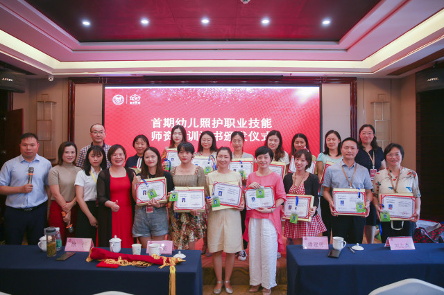 7月18日上午,教育部第三批“1+X幼儿照护”职业技能等级证书首期师资及考评员培训班结业典礼圆满收官。此次培训为期7天,培训课程以幼儿照护事业为中心点展开,着重实战落地,内容丰富,涉及面广。来自全国各地十多个省、三十多所院校的专家老师参加了培训,共同进阶,为幼儿照护事业的美好明天而奋斗。