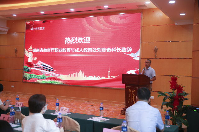 典礼伊始,湖南省教育厅职业教育与成人教育处科长刘彦奇率先发表致辞。“幼儿照护是一份伟大的事业,只有把幼儿照护做好,才能为全面二孩政策落地保驾护航”。刘彦奇讲话中指出,目前在推进的幼儿照护职业技能等级证书试点工作,是十分有意义的。对于大家疫情期间,仍从全国各地赶至湖南参加培训,他表示十分感动和分外欢迎。刘彦奇表示,长沙民政职业技术学院和金职伟业的强强联合,一定会将“1+X幼儿照护”职业技能等级证书师资及考评员培训落地服务做好做精。