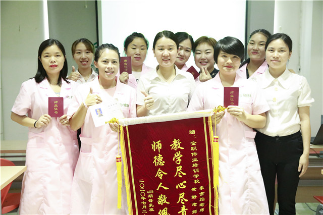 金职伟业催乳师、产后康复师班结业 学员赠送锦旗感谢师恩