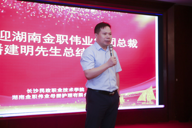 最后,湖南省育婴师协会会长、湖南金职伟业现代家庭产业发展有限公司总裁潘建明发表致辞。“感谢各位讲师的精彩授课以及各位专家老师百忙之中、不远千里来到长沙参加此次培训,也很感谢我们的团队为此次培训所做出的努力。”在今后,金职伟业将继续开展此类培训,与各大职业院校、应用型本科高校携手培育更多的优秀幼教人才,切实提高托育托幼行业服务质量水平,共创幼儿照护事业的美好未来。