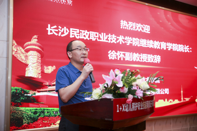 会上,长沙民政职业技术学院继续教育学院院长徐怀首先发表致辞。他强调“1+X幼儿照护”职业等级证书的落地实施,一方面有利于打通政策传导机制,靶向式解决“托育从业人员能力水平无法准确评价”的堵点问题;另一方面,能促进资历的跨领域、跨行业、跨地区的相互认可,可与从业人员职业资格准入制度对接。