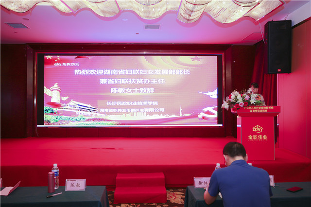 此次开班典礼由湖南省育婴师协会会长、湖南金职伟业现代家庭产业发展有限公司总裁潘建明主持。湖南省妇联妇女发展部部长兼省妇联扶贫办主任陈敏,长沙民政职业技术学院继续教育学院院长徐怀,湖南金职伟业集团董事长、金职伟业商学院院长、卓越创业导师彭英,湖南金职伟业母婴护理有限公司事业发展部陈慧卿等出席。