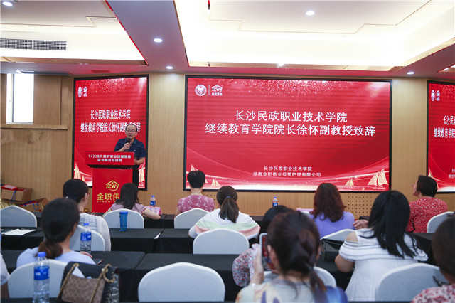 典礼伊始,长沙民政职业技术学院继续教育学院院长徐怀发表讲话。他强调幼儿照护领域发展前景广阔,并表示金职伟业与长沙民政职业技术学院将继续强强联手,广泛开展此类师资培训,携手开拓更高、更优、更广阔的平台,也希望与大家相约下一期的幼儿照护师资培训,来共同探讨、见证幼儿照护职业技能领域的发展。