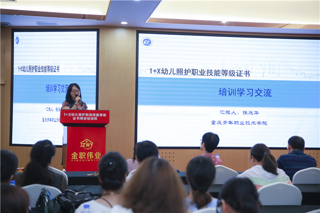 辽阳职业技术学院学前教育学院吕姝副院长、重庆青年职业技术学院学前教育学院张庆华院长就如何推动1+x幼儿照护职业技能等级证书的落地实施进行了汇报分享。