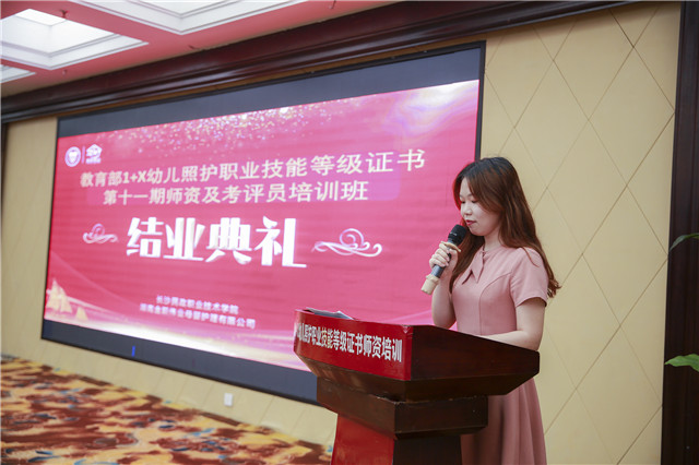 8月25日上午10点,教育部第三批“1+X幼儿照护”职业技能等级证书第十一期师资及考评员培训班结业典礼在湖南长沙湘府国际酒店内隆重举行。来自全国各地的百余位专家、教授、讲师齐聚于此,致力于为未来幼儿照护事业的健康发展做出贡献。