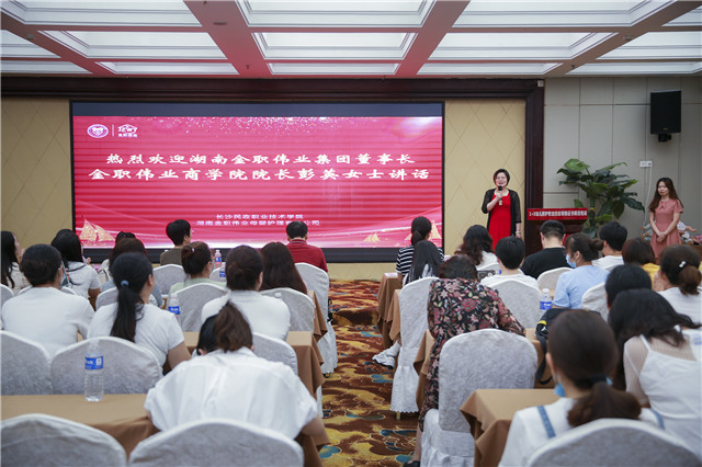 长沙民政职业技术学院继续教育学院院长徐怀,湖南金职伟业集团董事长、金职伟业商学院院长、卓越创业导师彭英,湖南省劳动和社会保障厅民办职业培训机构督导评估专家敬晓青,湖南金职伟业母婴护理有限公司幼儿照护技术负责人李偲婧等出席结业典礼。本次结业典礼由武汉城市职业学院梁爽老师主持。