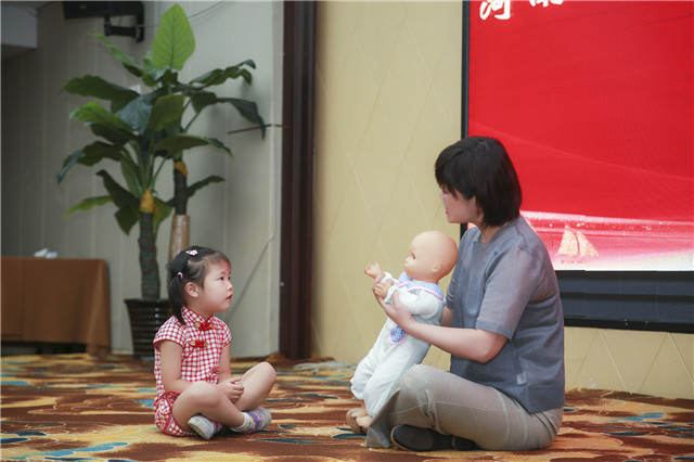 典礼上,北海市卫生学校李春花老师、重庆护理职业学院简平老师进行“心肺复苏技术”实操及考评演示;河南郑州鱼就是鱼托育雷响老师进行早教活动实操及考评演示。她们动作标准流畅,充分展示了1+X幼儿照护职业技能等级证书考评员靓丽风采。