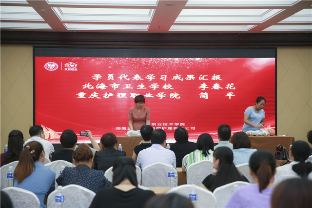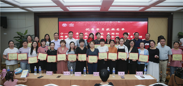 随后,对表现优异的学员进行了表彰,滁州城市职业学院徐立娟,格尔木市职业技术学校何斯日古冷,深圳市蓝雨伞健康教育促进中心易武,丽水学院张国民,四川省内江医科学校曾令聪,渭南市幼儿师范学校刘丽,河南鱼就是鱼托育雷响、杨飞,重庆市渝中职业教育中心张意,常州纺织服装职业技术学院蒋晓莉,荣获 “优秀班干部”称号。北海市卫生学校宁一静、李春花,宝鸡职业技术学院赵欣,滁州城市职业学院高国柱、徐立娟,大连商业学校姜艳,南平职业中专学院郑梨萍,福建省福鼎职业中专学校丁晶晶,甘肃省庆城职业中等专业学校李嘉,格尔木市职业技术学校东金梅,玉树州职业技术学校德吉羊措,广西城市职业大学谭晓娟,怀集县诚意家政服务有限公司林小瑜,桐梓县中等职业学校张莉莉,山东省菏泽信息工程学校吕庆丽、袁秋霞,呼伦贝尔职业技术学院焦健,湖北三峡职业技术学院赵倩倩,黄梅理工中等专业学校刘红,汪清县第一职业技术高中彭燕,上饶幼儿师范高等专科学校杨冬仙,天津滨海职业学院李升伟,渭南市幼儿师范学校马媛、王贵彦,西安职业技术学院程颖,中山市中等专业学校林珊,重庆护理职业学院简平、任柳,重庆市渝中职业教育中心刘娟,昭通市职业教育中心张丽娟,绵阳市株株糖托育服务有限公司李际霞,荣获“优秀学员”称号。
