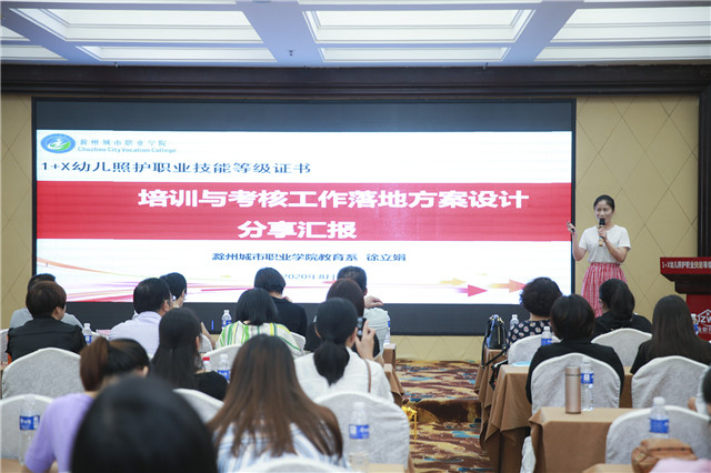 滁州城市职业学院徐立娟老师结合本校本专业申报学生人数和实际情况,汇报分享了其学校学生培训与考证方案。