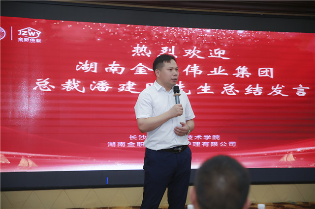 最后,湖南省育婴师协会会长、湖南金职伟业现代家庭产业发展有限公司总裁潘建明发表讲话,他再次感谢各位老师前来参加培训,并温馨提醒各位老师在官网平台做好注册工作,希望各位专家教授积极参加1+x课题研究,共建共享平台。