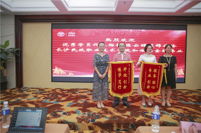 随后,本期优秀学员代表为长沙民政职业技术学院及湖南金职伟业集团赠予锦旗。