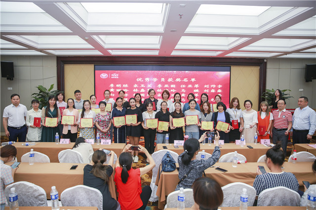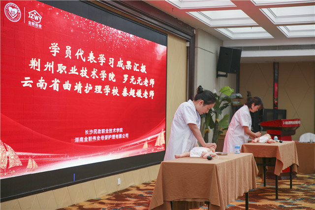 随后,对表现优异的学员进行表彰,重庆城市管理职业学院李明琼、齐齐哈尔市卫生学校康艳、大名县职业技术教育中心任亚萍、南京城市职业学院付奎亮、江汉艺术职业学院刘念念、民权职业技术教育中心尹慧平、四川卫生康复职业学院陈旭、佛山市华材职业技术学校黄丽玲、广西贺州职业学院陆建芬,获得“优秀班干部”及“优秀学员”称号。亳州幼儿师范学校宋玉兰,朝阳师范高等专科学校李亚囡,东乡区职教中心刘帅宇,佛山市华材职业技术学校林嘉慧,佛山市顺德区陈村职业技术学校林晓玲,甘肃钢铁职业技术学院马璇,甘肃工业职业技术学院刘露露,赣南卫生健康职业学院向好,广东亚视演艺职业学院柯国凤、宋荣兰,广西百色市民族卫生学校黄小萍、罗莹,广西工业职业技术学院王秀娟,桂东卫生学校杨梅,杭州科技职业技术学院马峰,河北工业职业技术学院成克惠,河南省驻马店市爱心幼教集团唐晶晶,河源市职业技术学校吕艺琴,化隆县职业技术学校沈永平,江汉艺术职业学院刘念念,荆州职业技术学院曾姗、罗元元,绵阳市婴幼儿托育服务行业协会关智元、李通俊,南京城市职业学院陈云,内蒙古卓资县职业中学陈俊龙,宁波卫生职业技术学院廖思斯,齐齐哈尔市卫生学校赵美佳,山东省民族中等专业学校李丽,陕西服装工程学院温馥榕,陕西省榆林市职业技术学院张玲,陕西咸阳旬邑县职教中心潘阿丽,商洛职业技术学院夏紫彤,神木职业技术学院孙云霞,四川省仁寿县第二高级职业中学吴志林,苏州卫生职业技术学院马荣华,台州科技职业学院张渝欣,太湖当代职业技术学校严婵枝,泰州职业技术学院卞倩,魏县职教中心牛义梅,云南省曲靖护理学校赵艺、秦超媛,云南省曲靖幼儿师范学校陆文婷,扎兰屯职业学院王志敏,长春师范大学牛琀,肇庆市工业贸易学校宗淑映,获得“优秀学员”称号。