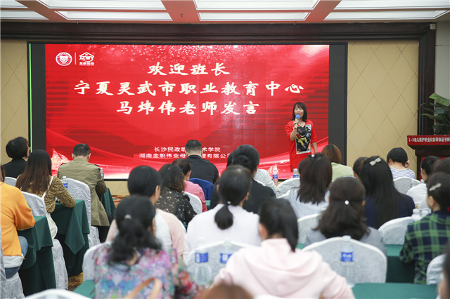 典礼伊始,长沙民政职业技术学院继续教育学院院长徐怀发表讲话。他呼吁金职伟业与长沙民政职业技术学院在今后继续深入合作,广泛开展此类师资培训,充分营造严谨好师、进取创新的幼儿照护领域学科发展精神。