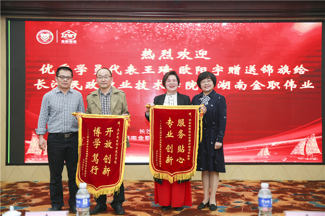 随后,本期优秀学员代表为长沙民政职业技术学院及湖南金职伟业集团赠予锦旗。