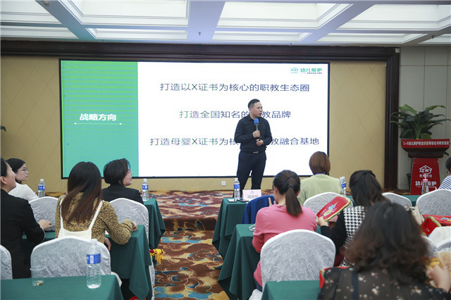 最后,湖南省育婴师协会会长、湖南金职伟业现代家庭产业发展有限公司总裁潘建明做总结发言,他提出了以下几点战略方向:其一,打造以X证书为核心的职教生态圈。其二,打造全国知名的职教品牌。其三,打造母婴X证书为核心的产教融合基地。最后,他希望每位老师在返校后能尽快制定落地方案,共同携手,凝心聚力培养好14万优秀学子。