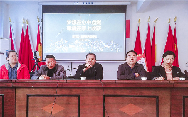 长沙市雨花区人力资源和社会保障局副局长李晓冬,长沙市雨花区驻龙山县石牌镇扶贫队队长杨旦,龙山县石牌镇镇长田良平、副镇长刘克树,华融资产扶贫队李向丽,桑植县官地坪镇水流村书记向绪徳,长沙市金职伟业职业培训学校外联部经理苏琼,资深育婴师讲师徐玲等出席了开班典礼。