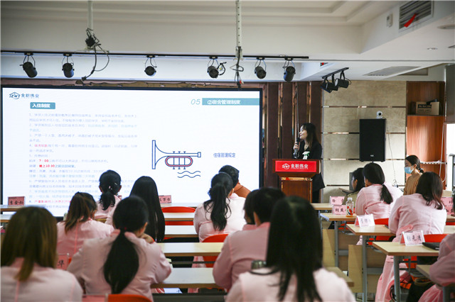 教务班主任尹慧慧则为学员们介绍了在校期间的规章制度、入学流程,希望学员们能够遵守制度,认真学习。