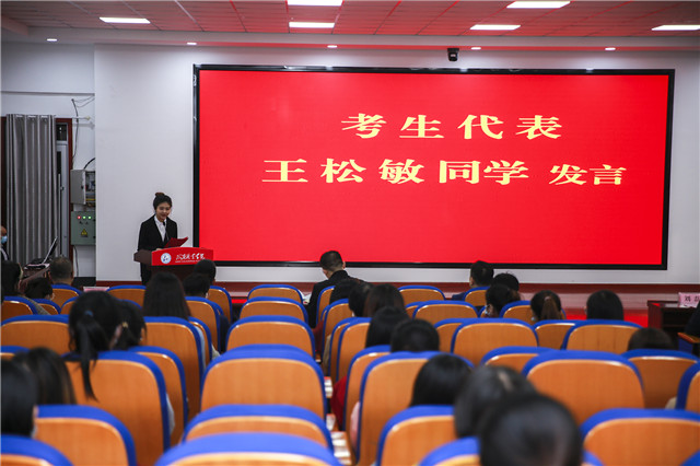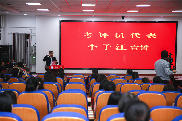 王松敏同学代表考生发言,“感谢金职伟业这个行业的领路人,感谢学校提供的优秀的实训条件,感谢老师的培养,也感谢备考阶段奋斗的日子,让自己提升了水平也找到了照顾婴幼儿的快乐。”随后,考生和考评员代表李子江教授宣誓。现场正能量满满,每个人的内心为之震撼!