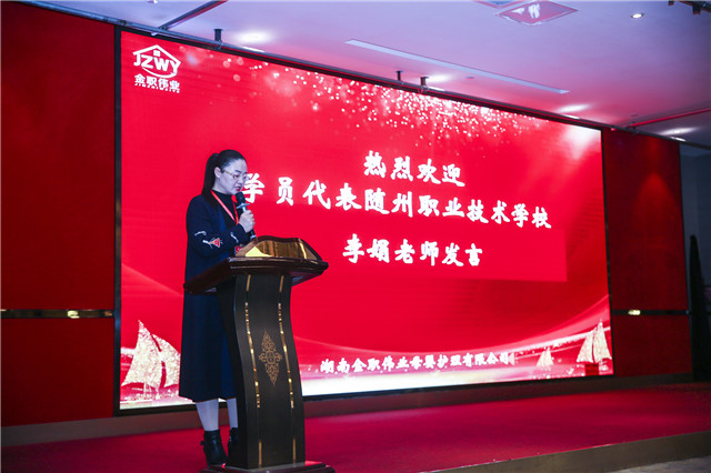 湖北省随州职业技术学院李娟老师、湘西民族职业技术学院彭明英老师作为学员代表发表感言,她们对金职伟业这家有情怀、有实力、有担当的企业,提供的此次宝贵学习机会均表示衷心地感谢,“每位老师来此参加培训都肩负着责任和使命,希望我们每位老师都能多交流、沟通,共同为‘1+X幼儿照护’职业技能等级证书全面落地保驾护航。”