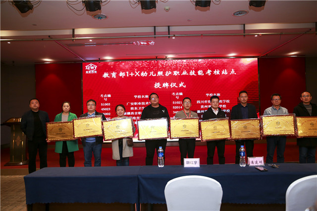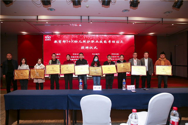 典礼上,湖南金职伟业集团为来自全国各地的50所职业院校、应用型本科高校授牌“教育部第三批幼儿照护1+x证书试点考核站点”。