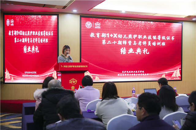 12月8日上午,教育部第三批“1+X幼儿照护”职业技能等级证书第二十期师资及考评员培训班结业典礼在湖南长沙隆重举行。来自全国各地的七十余名老师、专家齐聚于此,共同探讨婴幼儿照护事业的未来发展前景。