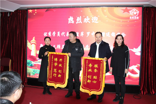 紧接着,本期优秀学员代表孝感师范曾俊萍老师与驻马店市经济开发区爱心置地幼儿园 罗中美老师为郑州幼儿师范高等专科学校及湖南金职伟业集团赠予锦旗。