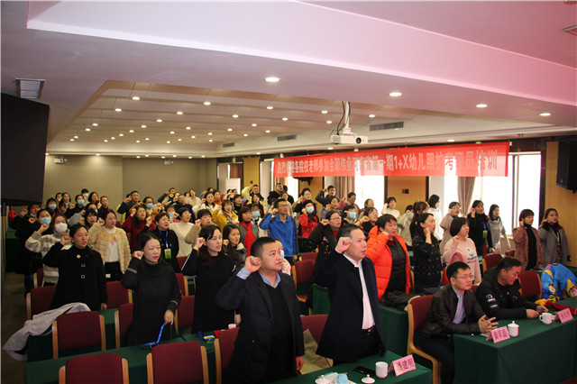 “我将全身心工作,用心培养,教育学生,尽心尽责,严格考评......”在座老师怀以庄重的态度进行宣誓,在今后,她们将恪守幼儿照护职业道德,用真心、爱心、细心、关心、热心塑造孩子光明的未来。