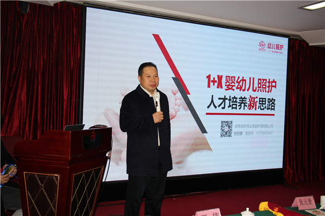 最后,湖南金职伟业集团总经理潘建明进行总结发言。他提到,作为教育部第三批1+X幼儿照护职业技能等级证书试点推进单位,金职伟业在1+X婴幼儿照护人才培养方面做出了诸多尝试,也收获了不菲成绩。他也希望在未来,有更多的行业专家、学者、有志之士加入这个朝阳行业,为实现100万婴幼儿照护人才的培养目标而努力,携手共创1+x幼儿照护证书的美好未来。