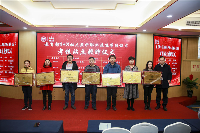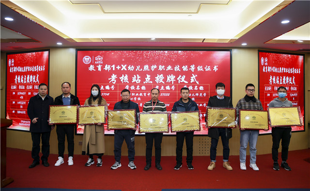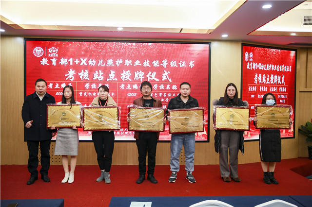 典礼上,湖南金职伟业集团还为来自全国各地的20余所职业院校、应用型本科高校授牌“教育部第三批幼儿照护1+x证书试点考核站点”。