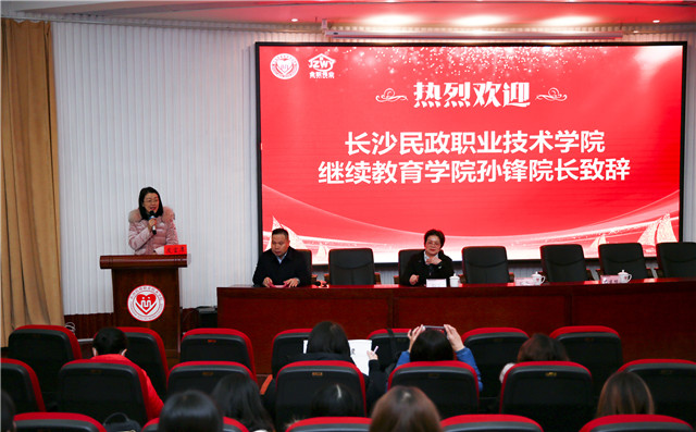 典礼伊始,长沙民政职业技术学院继续教育学院院长孙峰发表致辞,她强调,长沙民政职业技术学院作为首批职业教育1+X证书制度推进试点单位和双高校建设单位,一定会大力支持金职伟业的培训工作。也希望在座的各位加强学习交流,增进友谊,把培训办成紧张有序、团结高效的一次盛会,为职业教育更加美好的明天作出新的、更大的贡献。