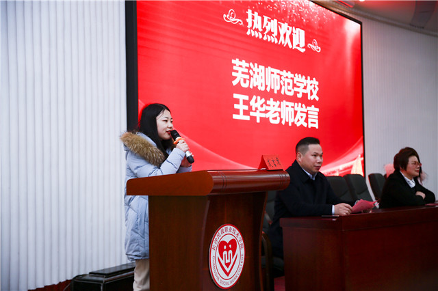 芜湖师范学校王华老师作为此次培训的学员代表进行发言。首先她对搭建此次学习交流平台的各位领导、专家表示衷心的感谢,并表示全体学员一定会倍加珍惜这次来之不易的学习机会,以饱满的热情、勤恳的作风、高度认真的态度去参加培训学习,真正学有所获、学有所用,不断提升自身的业务技能和综合素质。