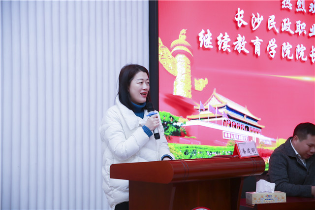 典礼伊始,长沙民政职业技术学院继续教育学院院长孙峰发表致辞。她指出,长沙民政职业技术学院作为首批职业教育1+X证书制度推进试点单位和双高校建设单位,一定会大力支持金职伟业的培训工作。也希望在座的各位老师在培训过程中不断深入探讨幼儿照护专业知识、技能,在课后也积极加强沟通交流。
