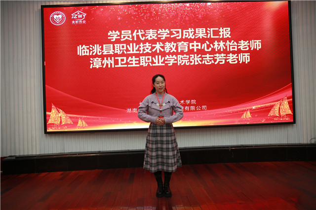 临洮县职业技术教育中心林怡老师作为优秀学员代表进行讲话。她表示在这为期六天的培训中不仅感受到了金职伟业集团的温暖与关怀,而且学到了许多知识,更了解到国家对职业教育改革的政策,她希望在未来与在座的所有老师共同努力,为职业教育贡献出自己的一份力量。