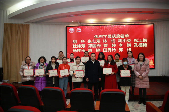 随后,对认真负责的班干部及表现优异的学员进行表彰。曲阜中医药学校孔珊珊,柳州市第二职业技术学校葵莉,汕头市创柠职业培训学校李少敏,江西省通用技术工程学校彭欢,保定幼儿师范高等专科学校马海涛,福建省霞浦职业中专学校赖滢涛荣获“优秀班干部”称号,重庆市垫江县职业教育中心胡冬,漳州卫生职业学院张志芳,临洮县职业技术教育中心林怡、胡小英,宣化科技职业学院席江艳、杜炜芳,漳州卫生职业学院郑丽秀,茂名市第一职业技术学校曾婷、李娴,蠡县启发职业技术教育中心孔德艳,广西水产畜牧学校马桂玉,铜川职业技术学院惠婷,保定幼儿师范高等专科学校田秀玲,武昌职业学院郭格荣获“优秀学员”称号。