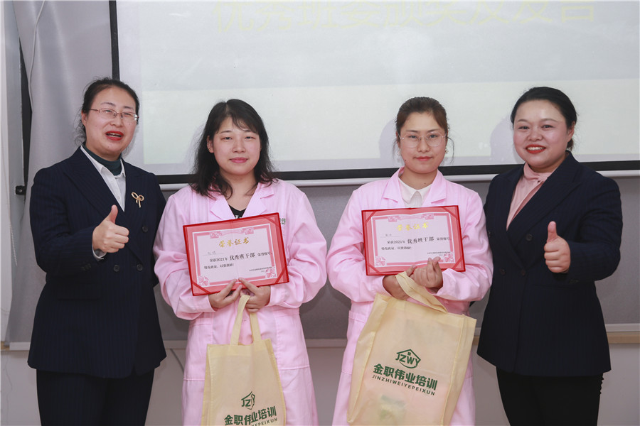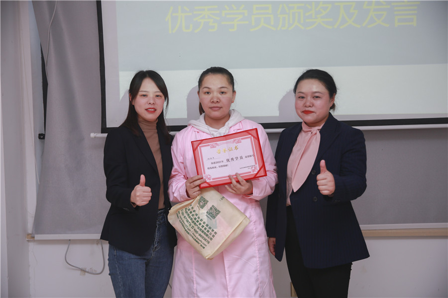 随后,对认真负责的班干部及表现优异的学员进行表彰。阳娟、彭丹荣获“优秀班干部”称号,姚亚琴荣获“优秀学员”称号。