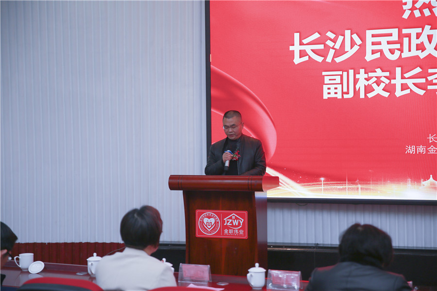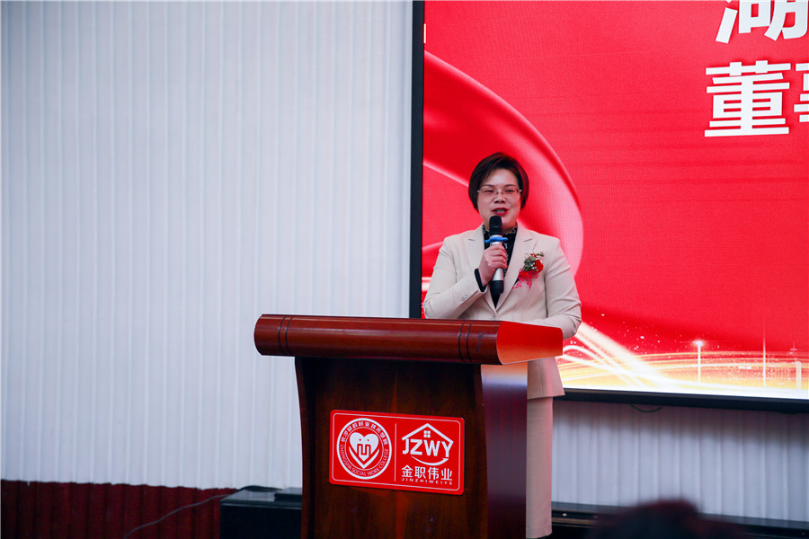 随后,湖南金职伟业集团董事长彭英发表致辞。她首先对各位领导、专家老师的到来表示热烈欢迎,并就此次活动分享了四点内容:其一,党的好政策,金职人在路上。在国家教育、人才、产业政策的大力支持下,金职伟业迎来了发展的春天,希望今后能够与各位携手,实现学生好学、老师好教、企业好用的伟大目标。其二,2020年度幼儿照护职业技能等级证书推进工作卓有成效。其三,充分发挥幼儿照护等级证书对学校、教师、学生的作用,实现国家职业教育的改革与创新。其四,作为国家教育部1+X幼儿照护职业教育培训评价组织,金职伟业将会继续发挥龙头企业的示范性作用,带动更多的托育、儿童保健、学前等领域的企业发展,并不留余力地推动1+X幼儿照护等级证书制度的落地。最后,彭英强调,2021年,是中国共产党建党100周年,也是金职伟业开启第二个五年计划的第一年,在今后,金职伟业将以习近平新时代中国特色社会主义思想为指导,坚守为党育人、为国育才的初心及让千万妇幼老实现健康幸福生活的使命,以更广的视野、更强的担当、更大的作为,书写金职伟业高质量发展的新篇章。