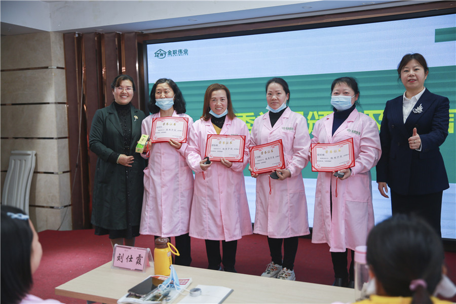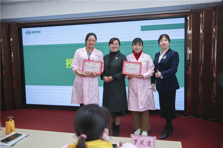 之后,资深讲师隆鸿志为学员们颁发荣誉证书,班长罗静、学习委员张洋获得了“优秀班干部”证书,学员谭春燕、王昊阳、高喜吾、葛星球获得了“优秀学员”证书。学员们纷纷发表获奖感言,“谢谢老师的细心教导,谢谢姐妹们的帮助”“感谢金职伟业给我们提供了一个免费学习养老护理的平台。”“很意外能获得这个证书,在这里我学到了很多知识,结业之后我不仅会照顾好自己的小家,还会慢慢地服务社会。”
