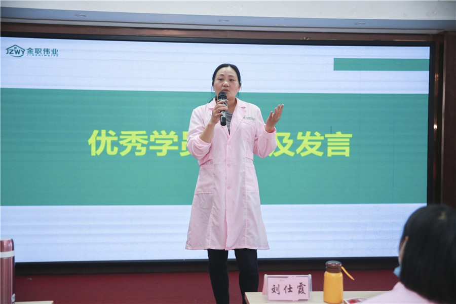 节目结束后,学员们纷纷上台分享自己的心得。班长罗静谈道:“非常感谢金职伟业提供的此次免费学习的机会,通过学习我们掌握了养老护理相关的专业知识和实操技能,这不仅为今后就业提供了新的渠道,更有助于我们实现自己的人生价值。”学委张洋哽咽道:“这十天过得非常充实,同学们相处也很融洽。经过了这次培训,我在老师的开导下全面认识了自己,并找到了自己努力的方向。最后,祝老师授课快乐,祝同学们学有所成,学有所用,日后多保持联系!”