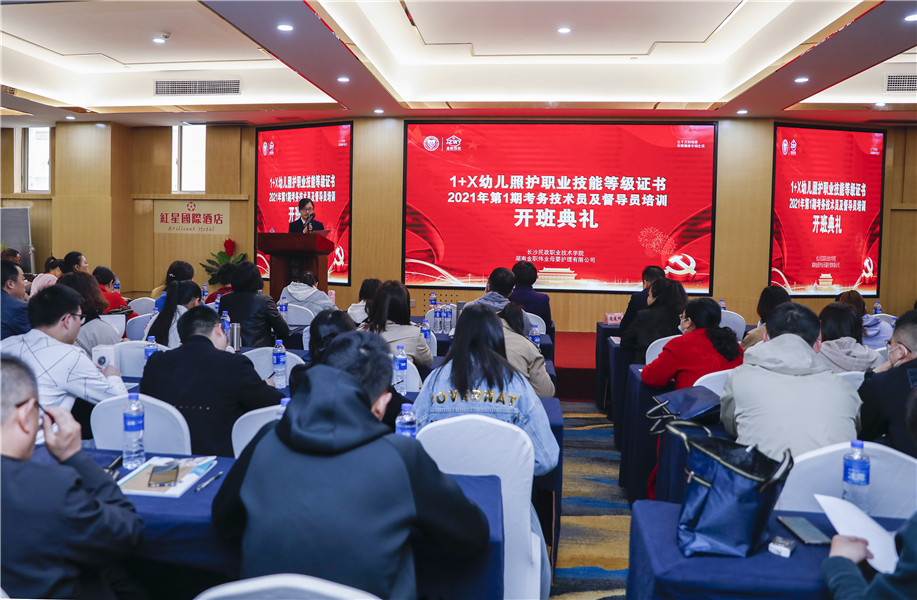 3月26日上午,第三批1+X幼儿照护职业技能等级证书2021年度第一期考务技术员及督导员培训班开班典礼在湖南长沙隆重举行。